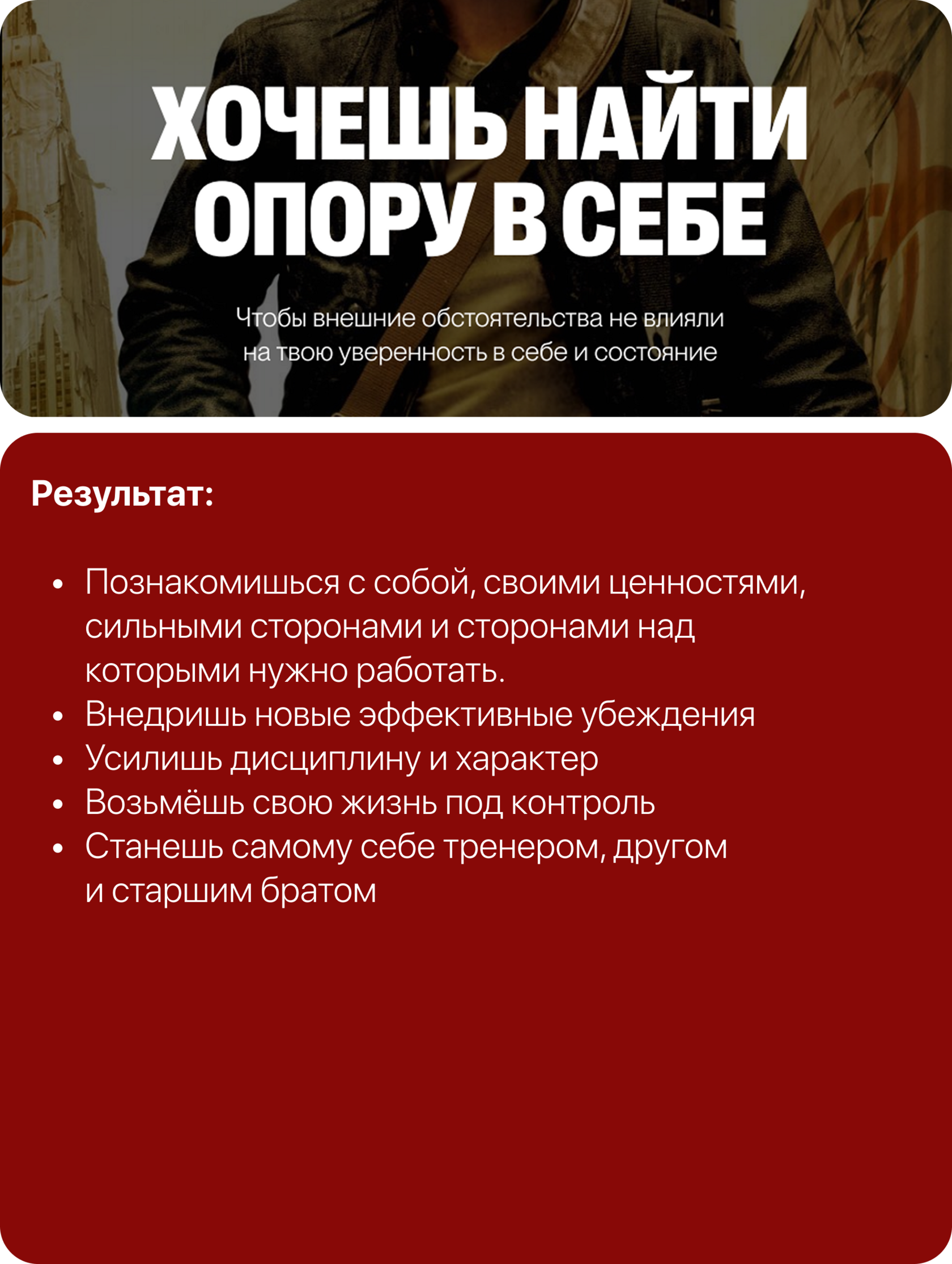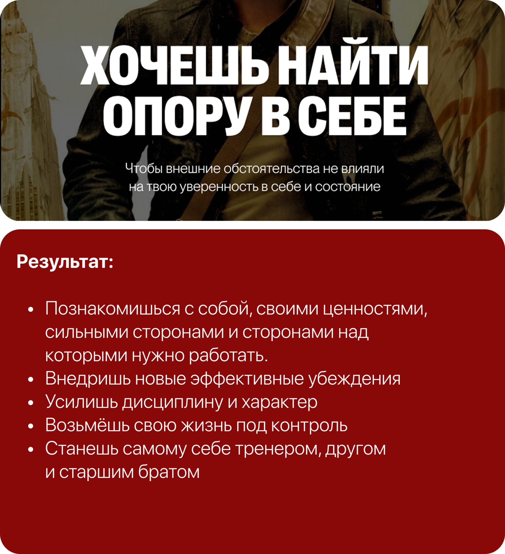 Так что вступая в наше братство, ты начинаешь брать ответственность за свою жизнь и встаешь плечом к плечу с такими же амбициозными и решительными мужчинами, которые хотят брать от жизни больше, чем то, что само идет в руки.