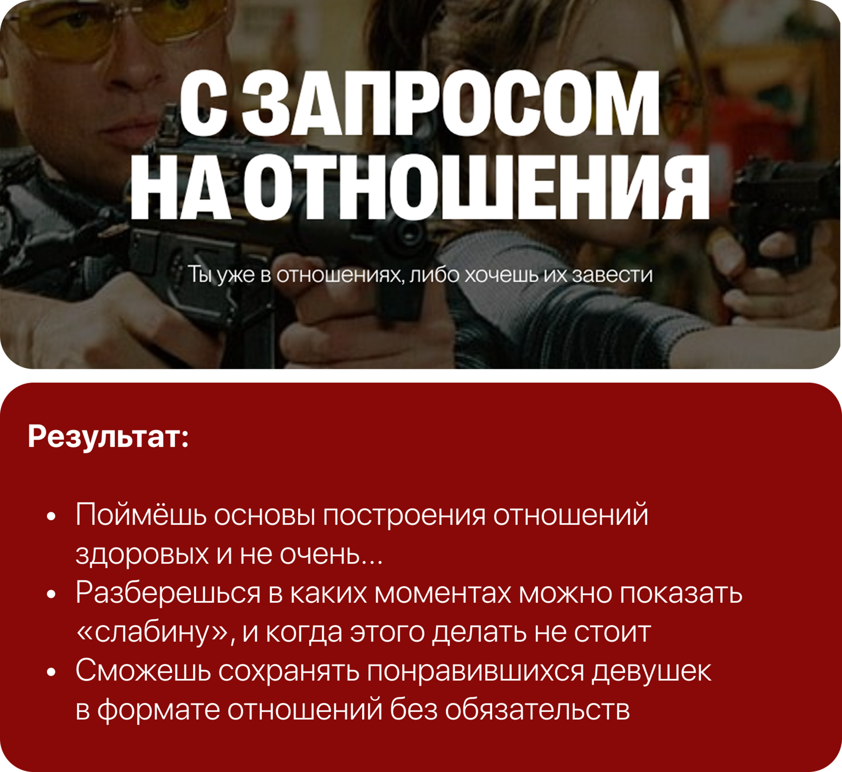 Через тему «близости с красивыми девушками» я даю парням намного больше — а именно искусство быть мужчиной.